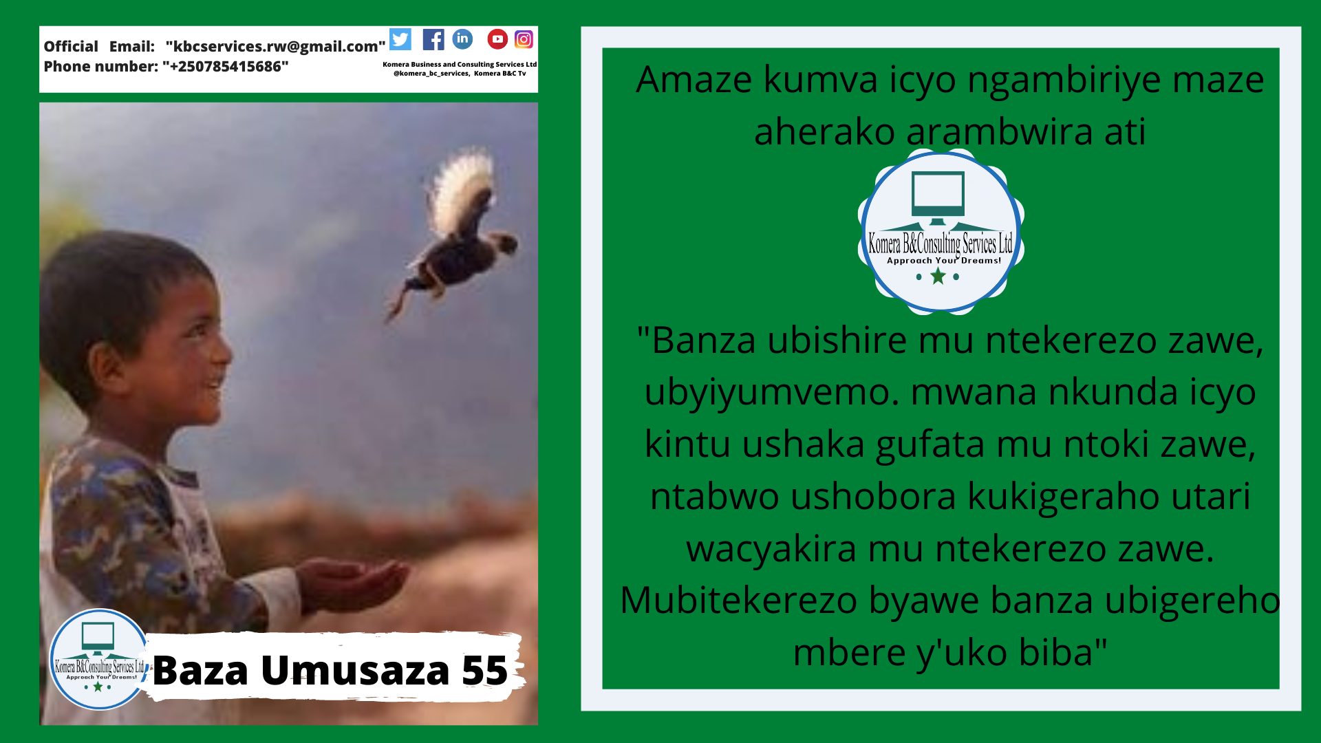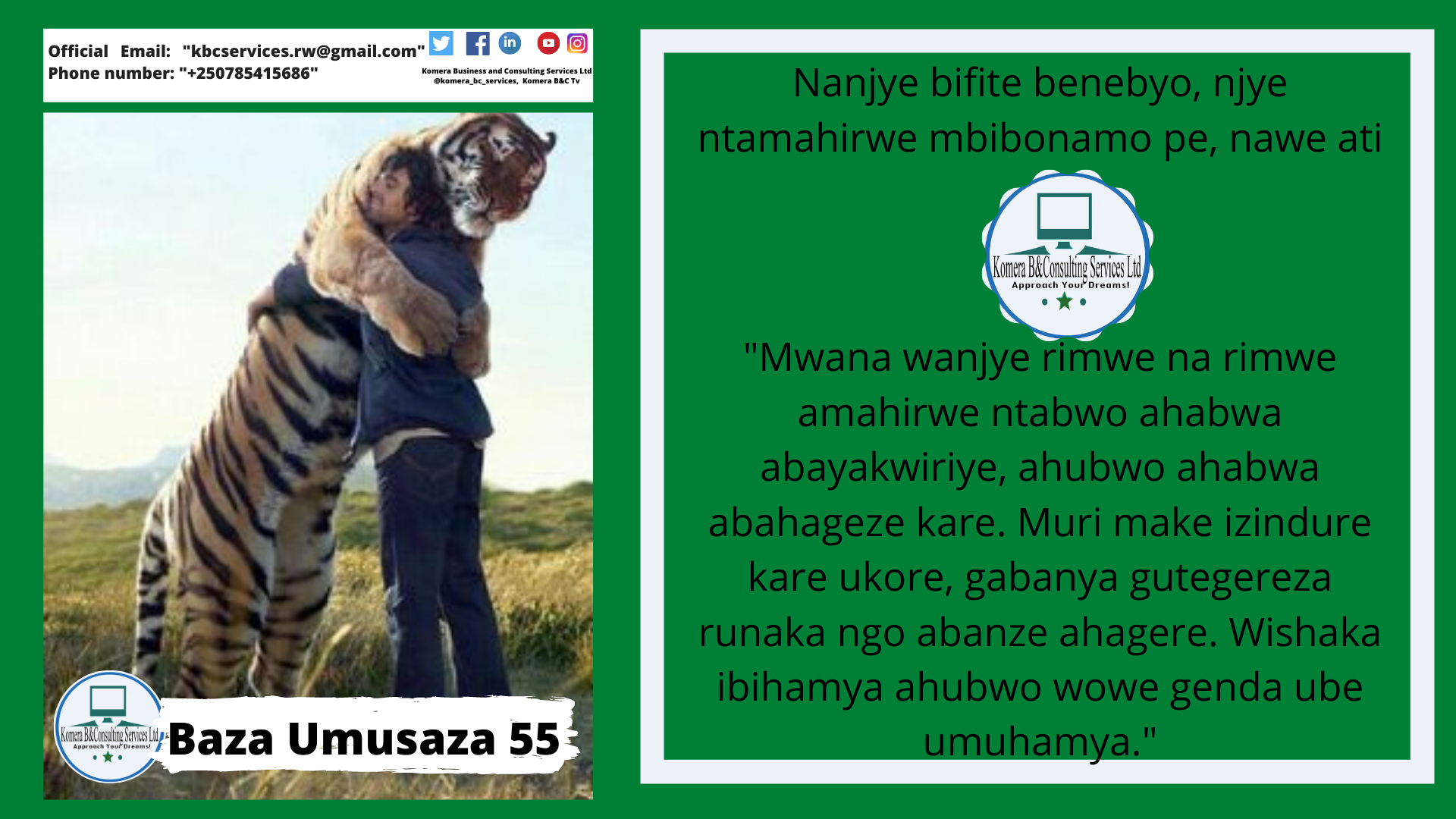 Komera Business And Consulting Services Ltd is legally registered company in Rwanda, East Africa under Rwanda Development Board. We are located in Musanze district in Northern Province of Rwanda.